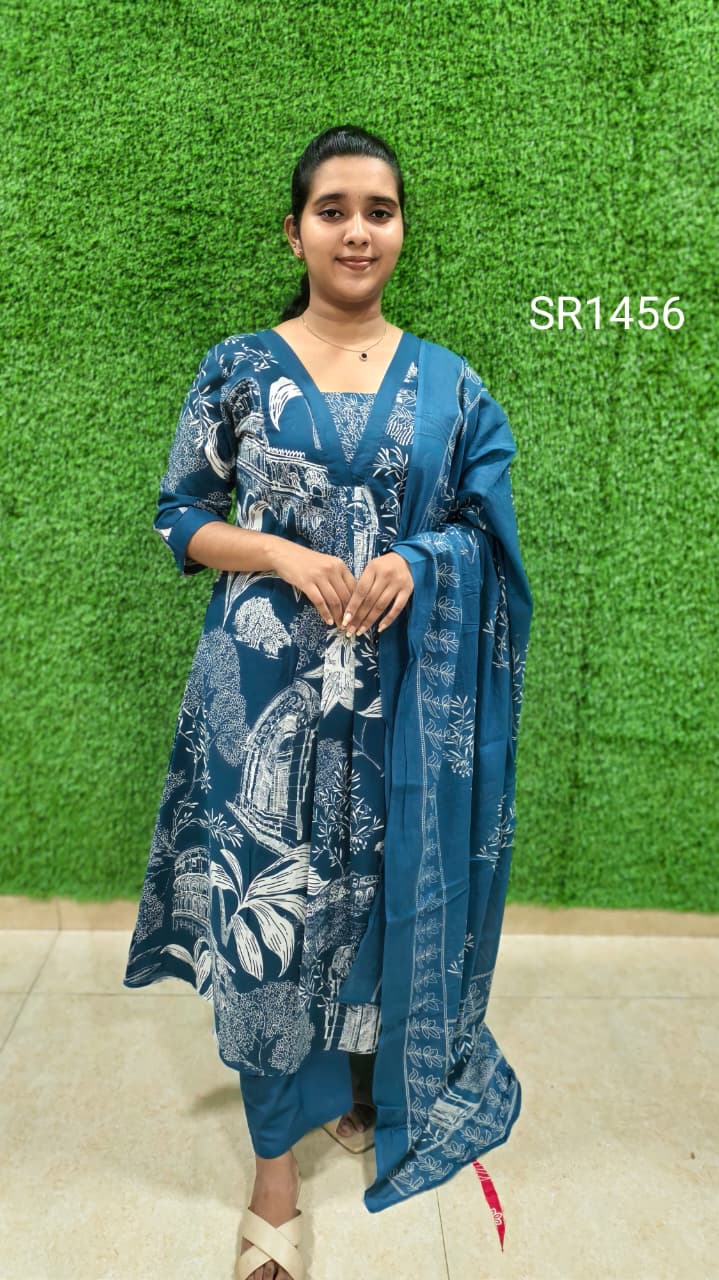_V neck A-line frock type kurti+ Parallel Pant + Duppata_