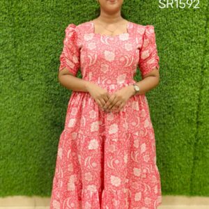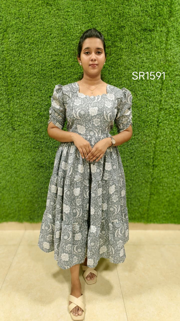 *_Type : Scalp neck Big flair 4.5 metres 3 tier Gathering Elbow puff sleeve(center elastic)with 2 Side Zip And Back elastic_*
