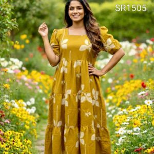 *_Type : Scalp neck Big flair 4.5 metres 3 tier Gathering puff sleeve( centre Elastic)with 2 Side Zip And Back knot_*