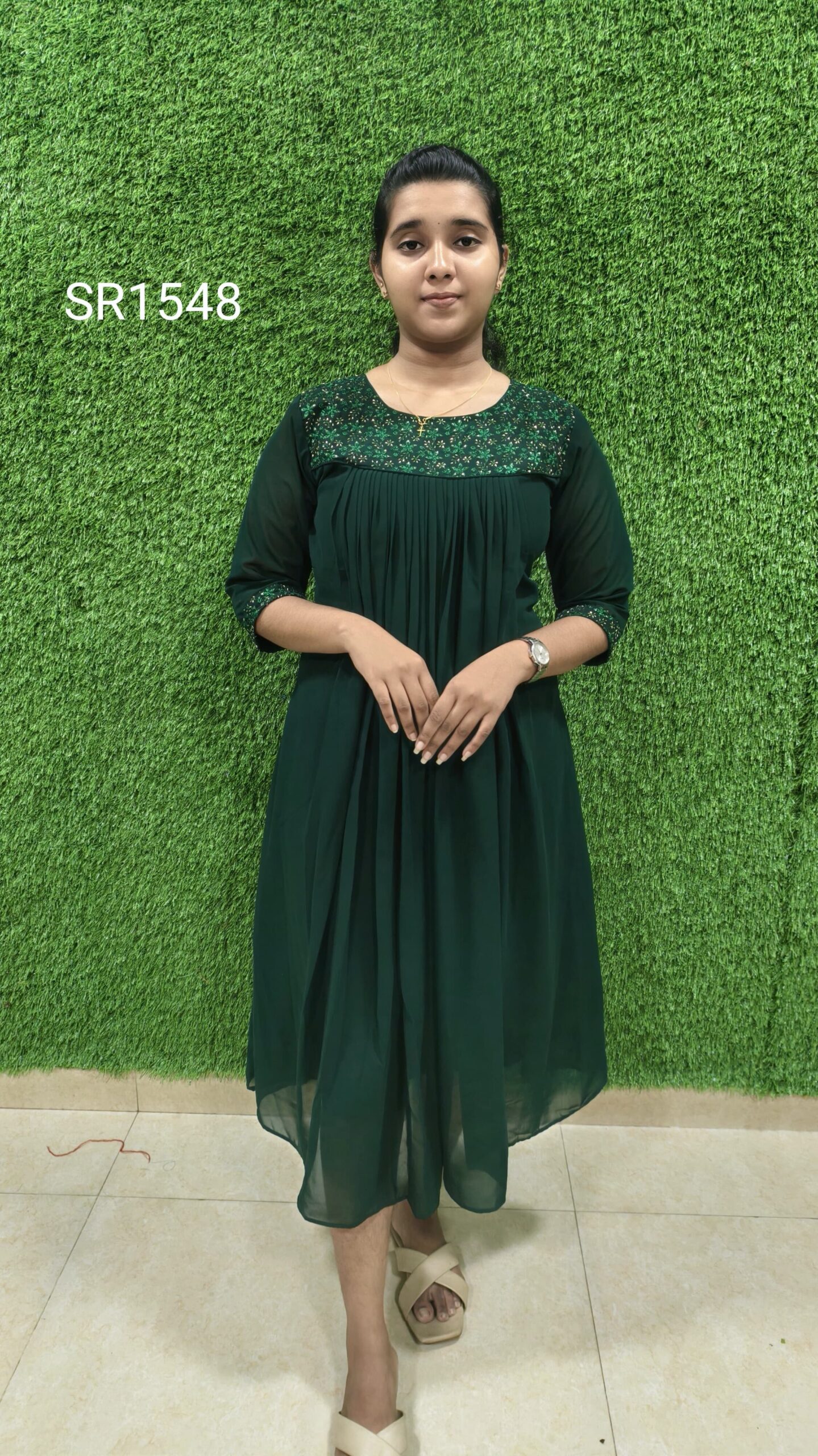 *_Heavy pleated Golden embroidery Round neck A line 3/4 sleeve and 2 side zip_*