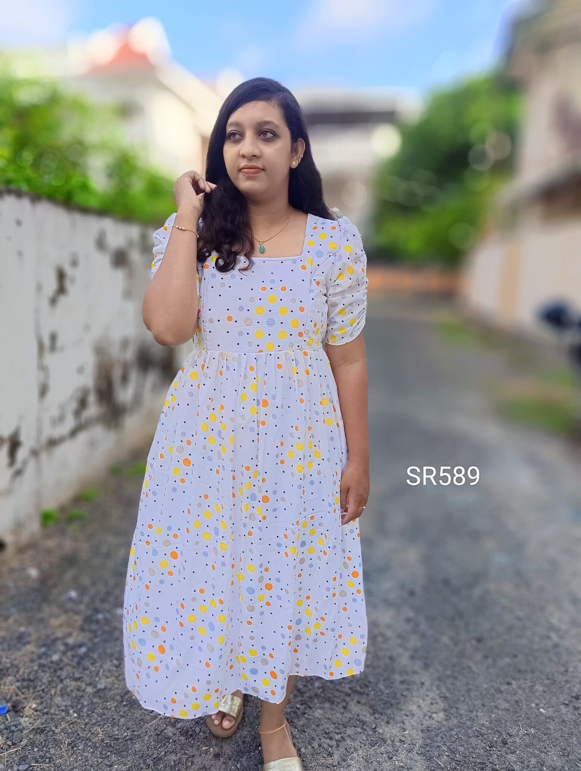 *_Type : Square neck Gathering Elbow puff Sleeve(center elastic) and Two Side Zip Back Knot_*