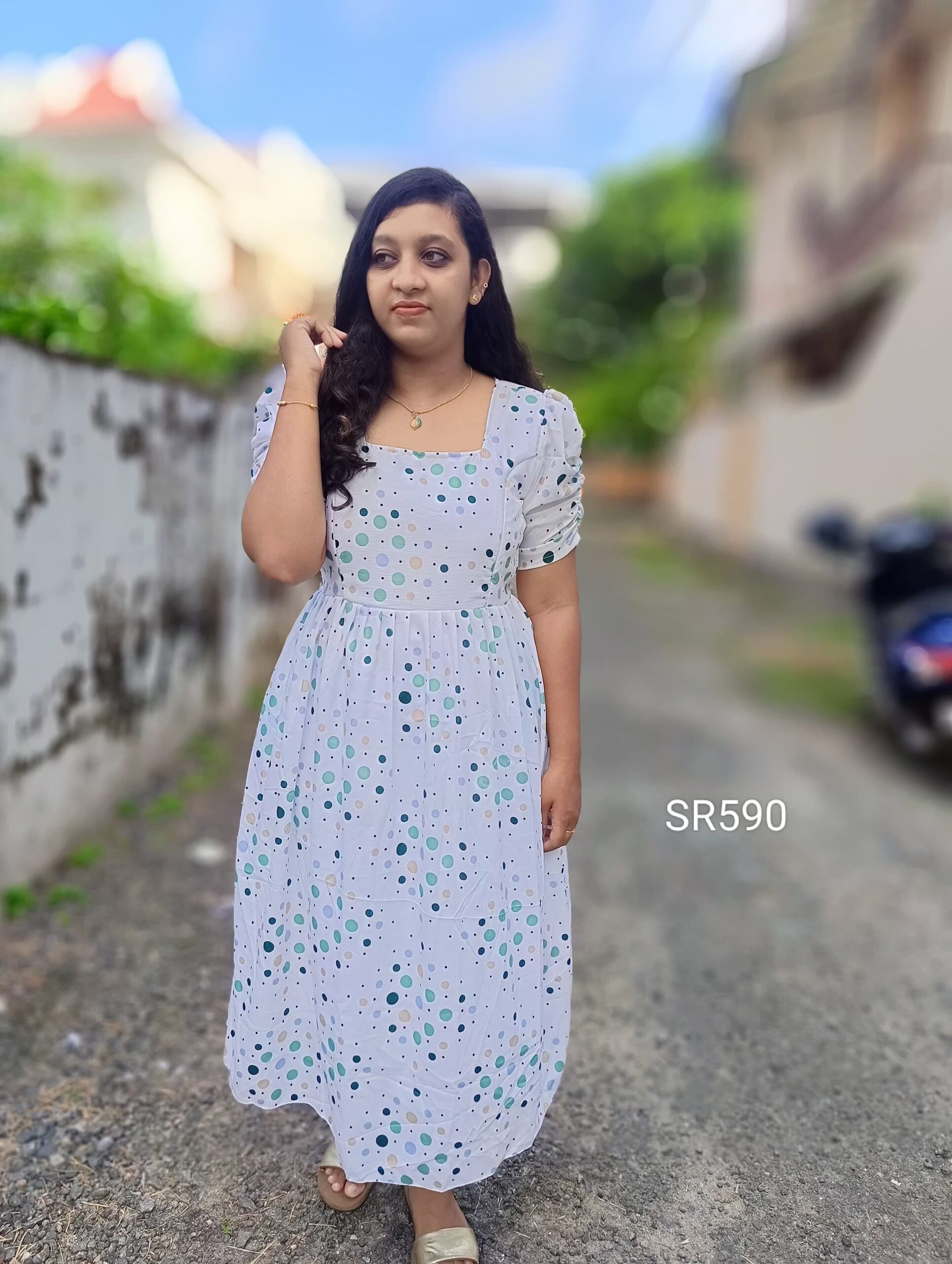 *_Type : Square neck Gathering Elbow puff Sleeve(center elastic) and Two Side Zip Back Knot_*