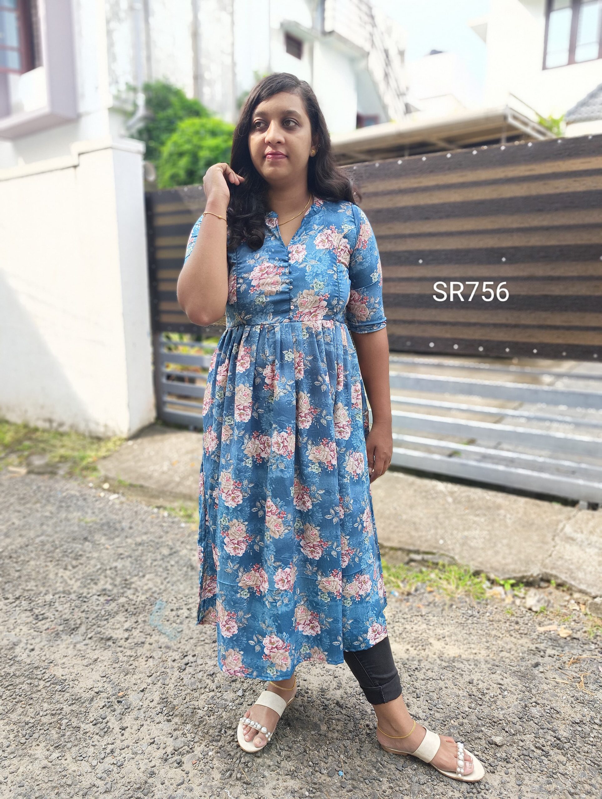 _Type : Colar Neck Gathering 2 side slit with Gown type 3/4 Sleeve and Two Side Zip back knot_