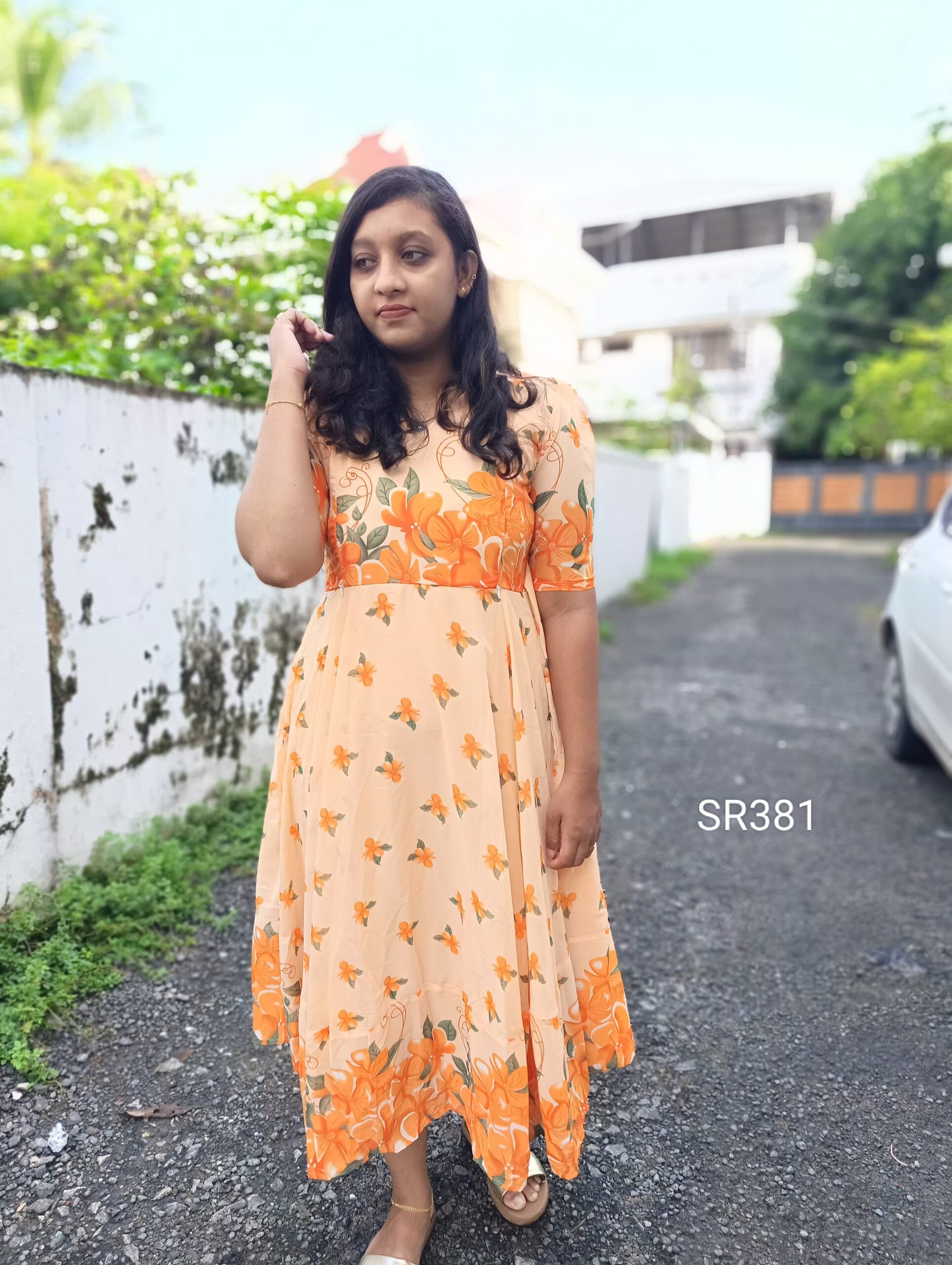 *_Type : V neck Big Umbrella (4 metres flair) Elbow Sleeve and Two Side Zip Back Knot_*