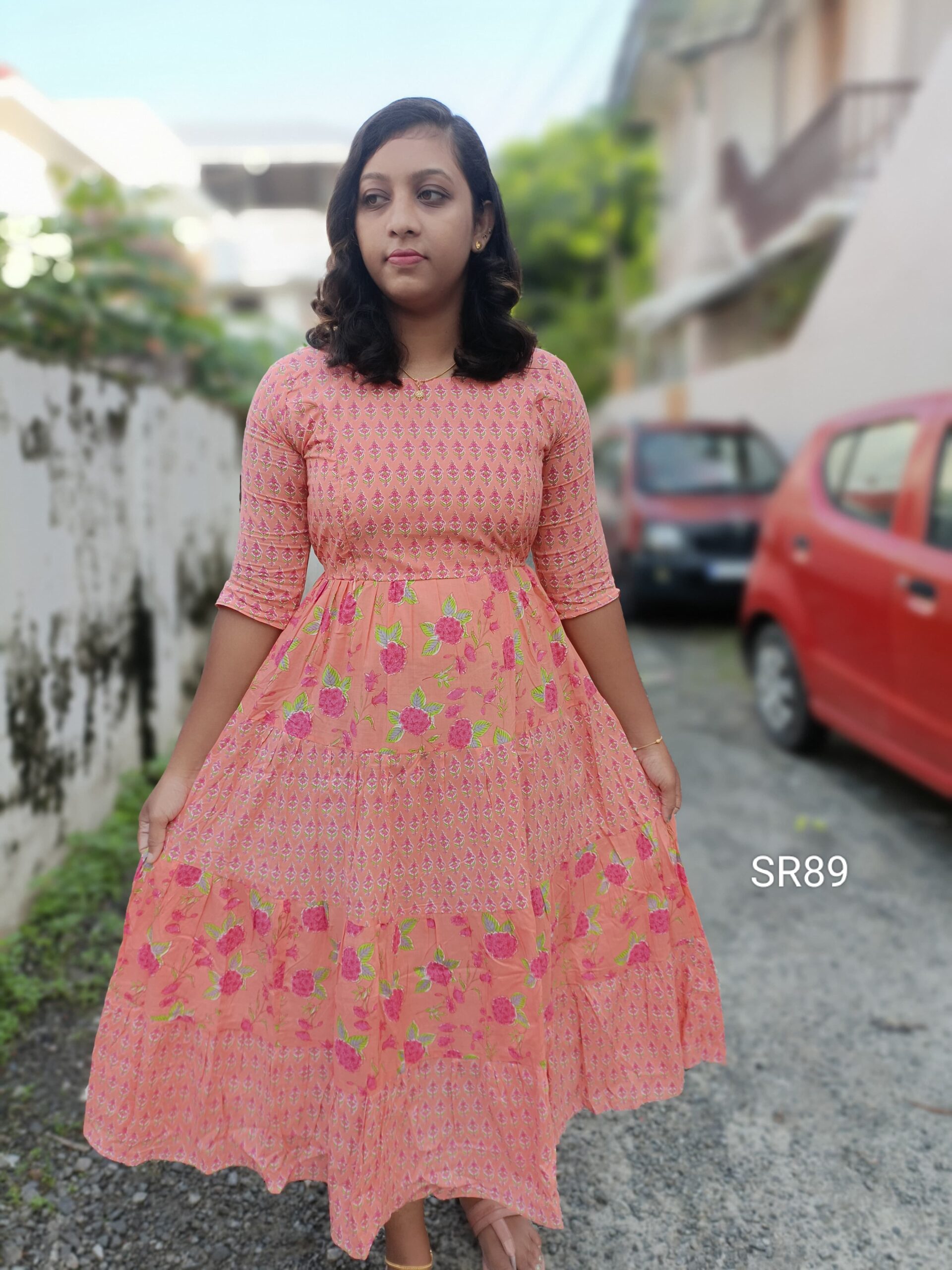 *_Type : Long gown(4.25 metres flair) 4 tier Gathering 3/4 sleeve 2 Side Zip And Back Elastic_*