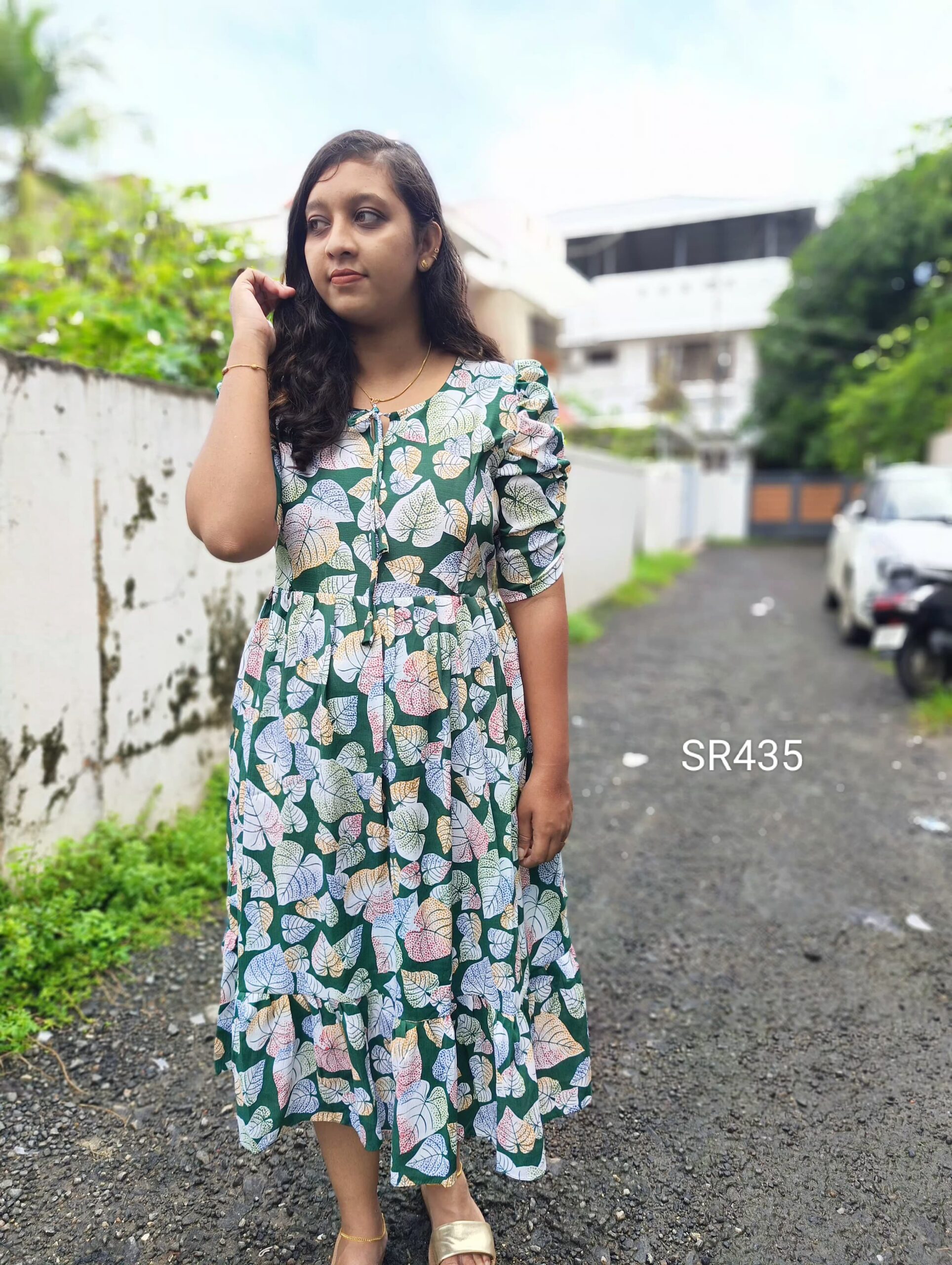 _Type : 2 tier Gathering Elbow puff Sleeve(Centre elastic) and Two Side Zip back knot_