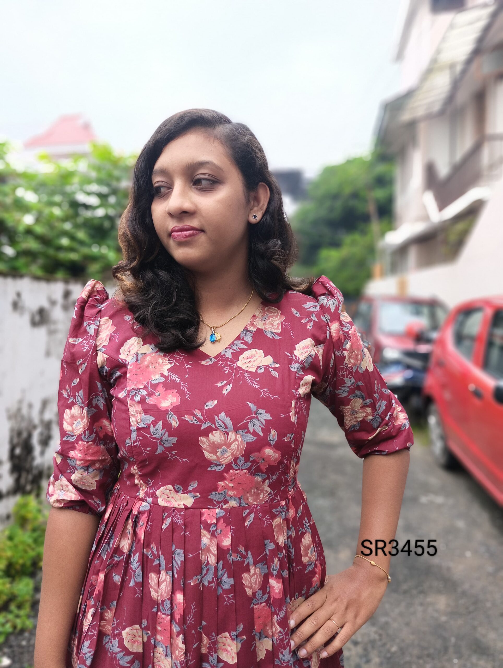 *_Type : Anarkali 1 Tier Gathering 17 inc puff Sleeve(Elastic) and Two Side zip Back knot_*