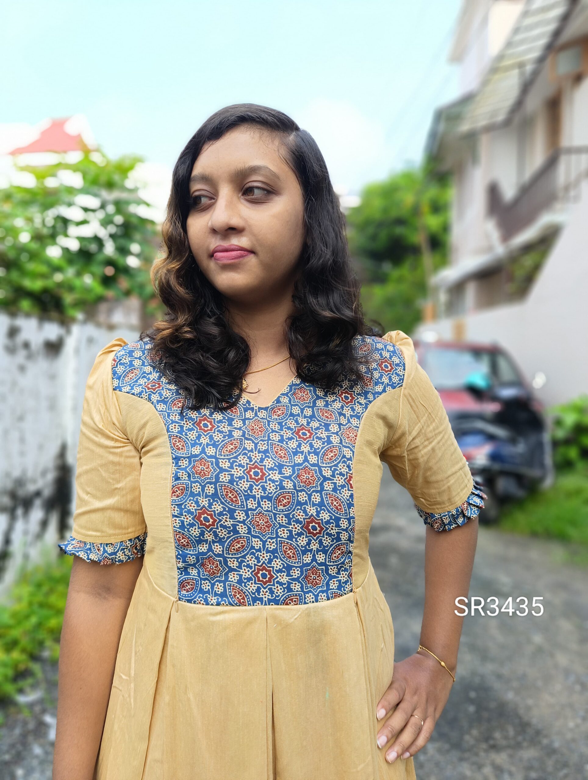 Fabric : Slub slik/Cotton Ajrak print