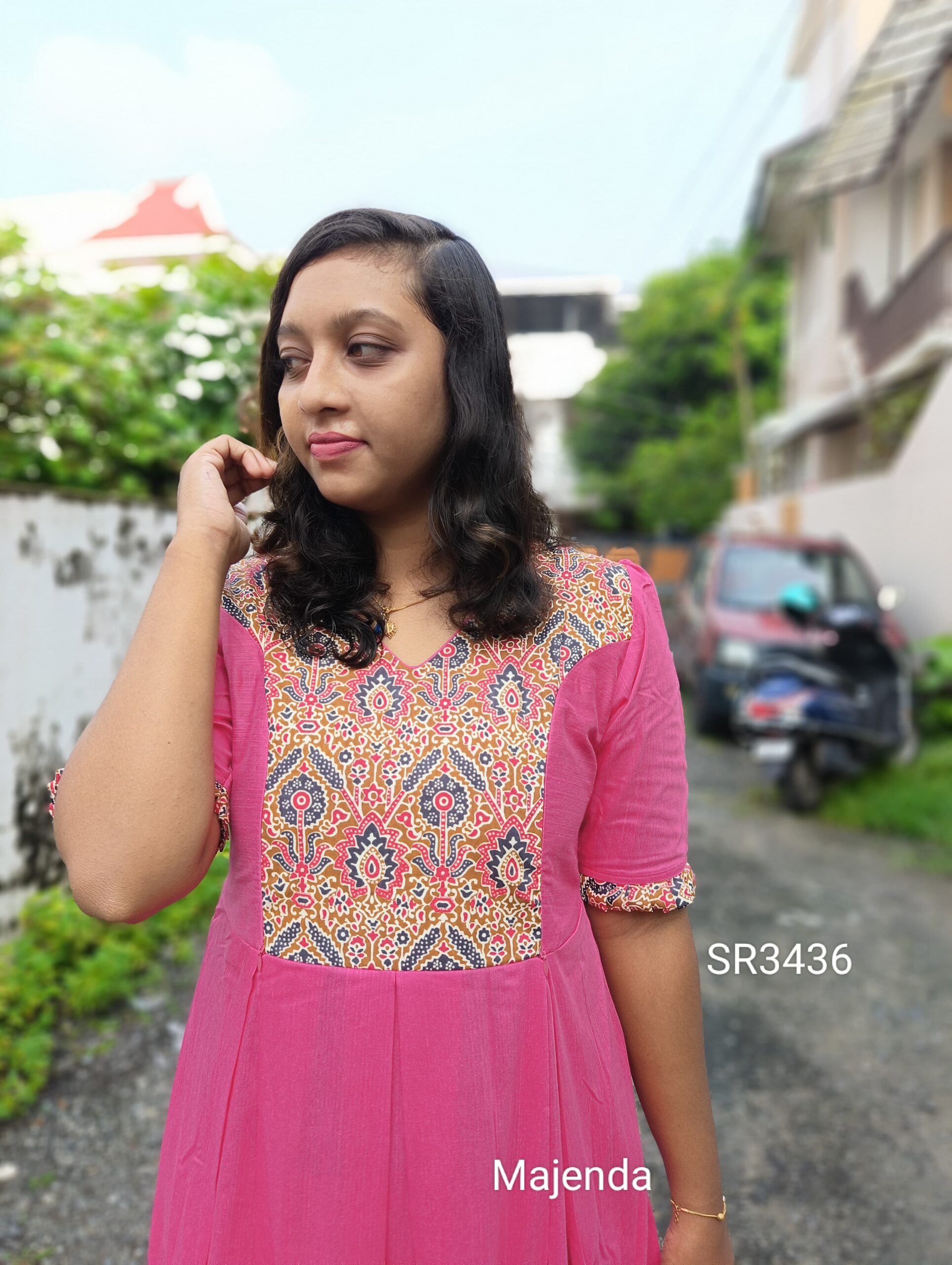 Fabric : Slub slik/Cotton Ajrak print